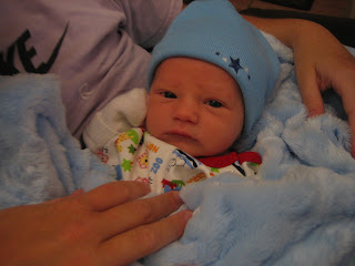 What a handsome devil! Those Hutchison grandbabies are the cutest babies ever. We can't wait to meet him! How did he not get the Hutchison ears?!