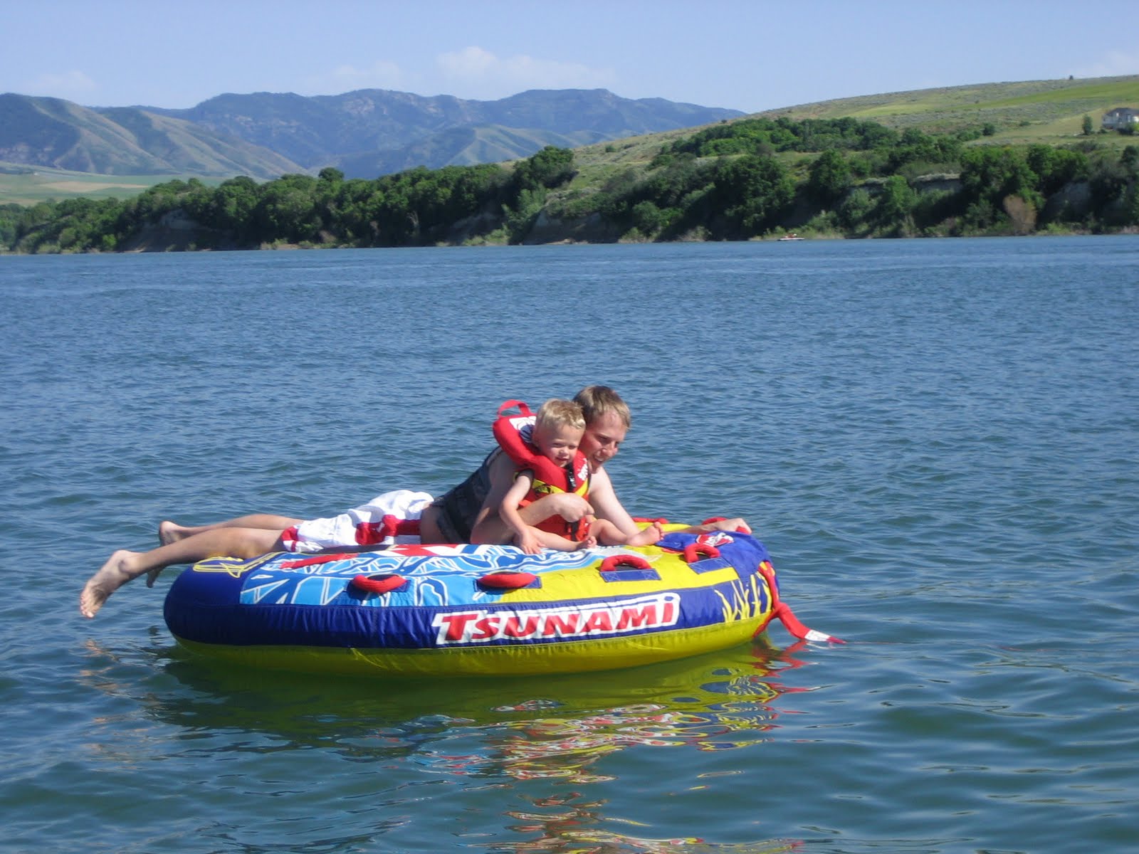 When we got to Hyrum Dam he couldn't wait to go in the water. He went on the tube with Daddy and then wanted to go with Ashley and Brad. He then went with Nanna and Pappa as well. We had a lot of fun and cannot wait to go again.